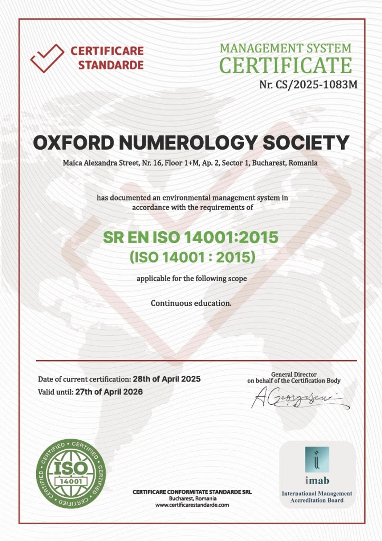 By attaining ISO 14001 certification, Oxford Numerology Society affirms its integration of sustainability principles